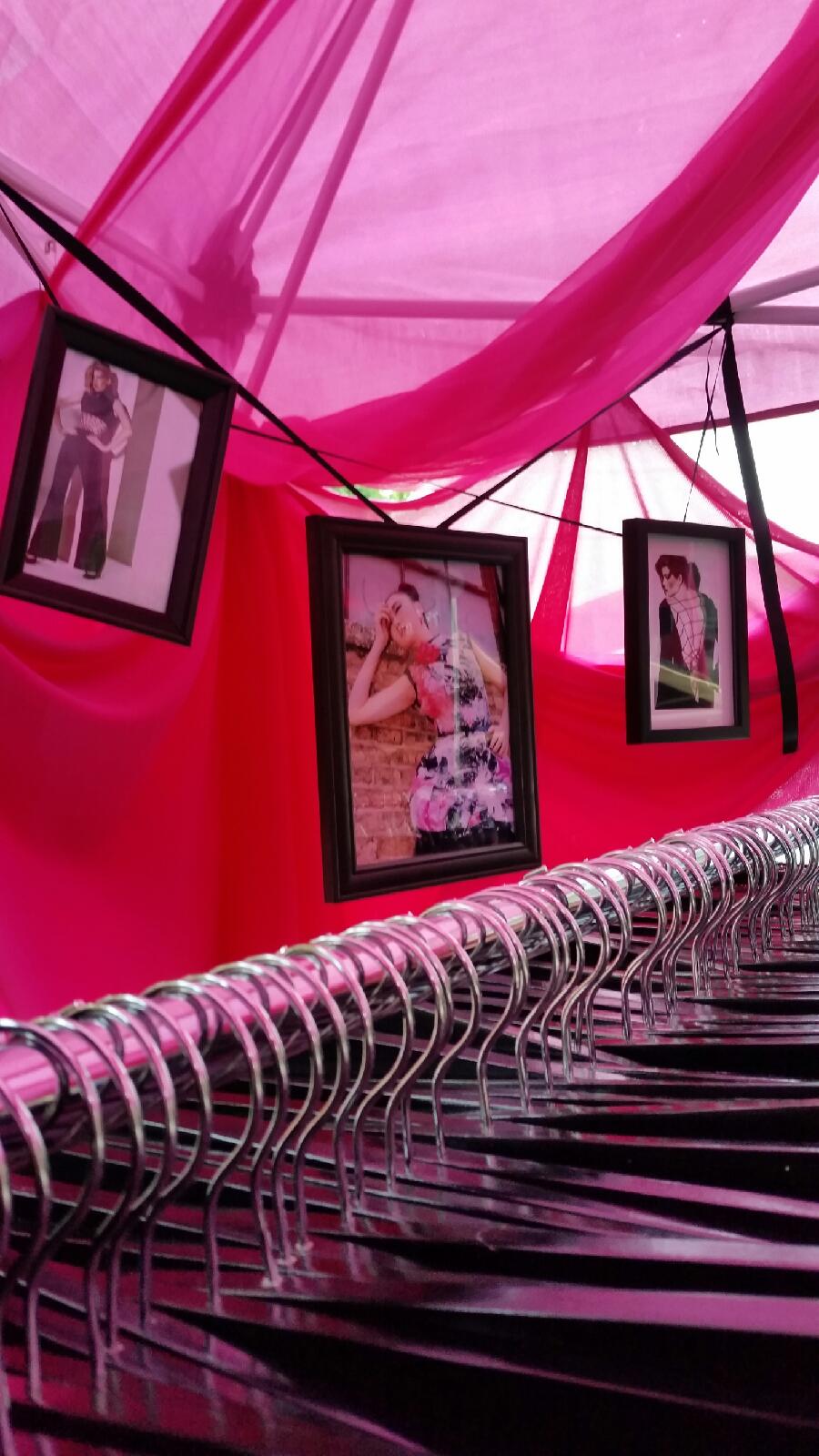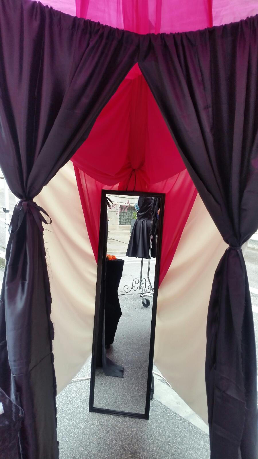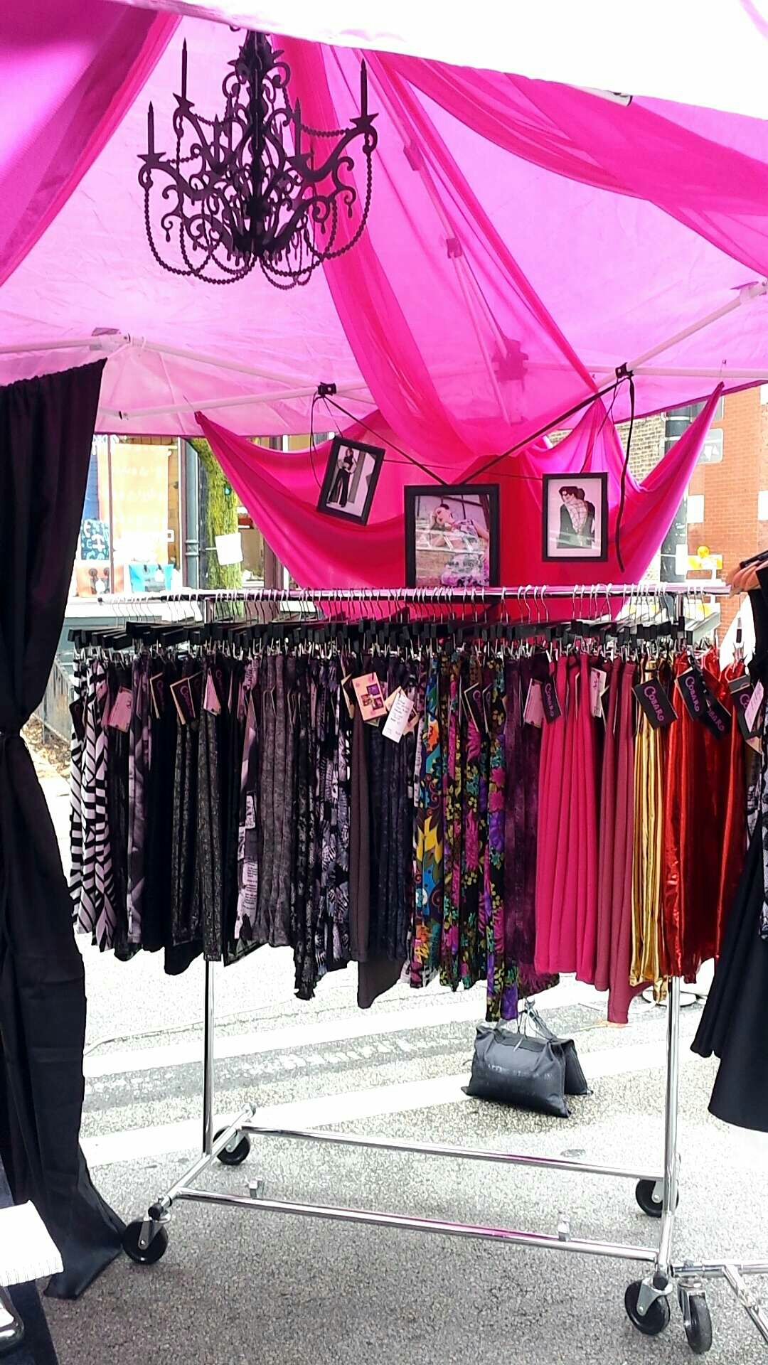 We hung up some pictures of my designs, I had 2 racks of clothes, and we even set up a little fitting room with a mirror.