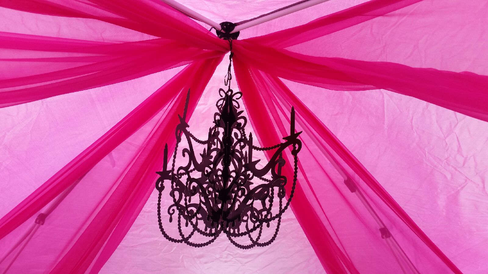 I was very happy on how my tent turned out! We draped hot pink sheer fabric inside the tent with a beautifully cut paper chandelier.
