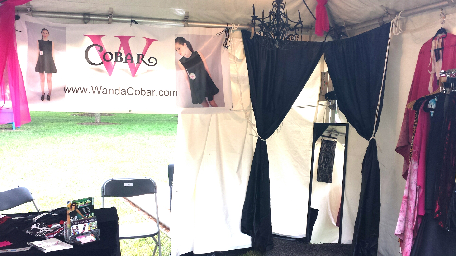She helped me set up the sign display, a small fitting room inside the tent, organize the clothing racks and most importantly do food runs for me!